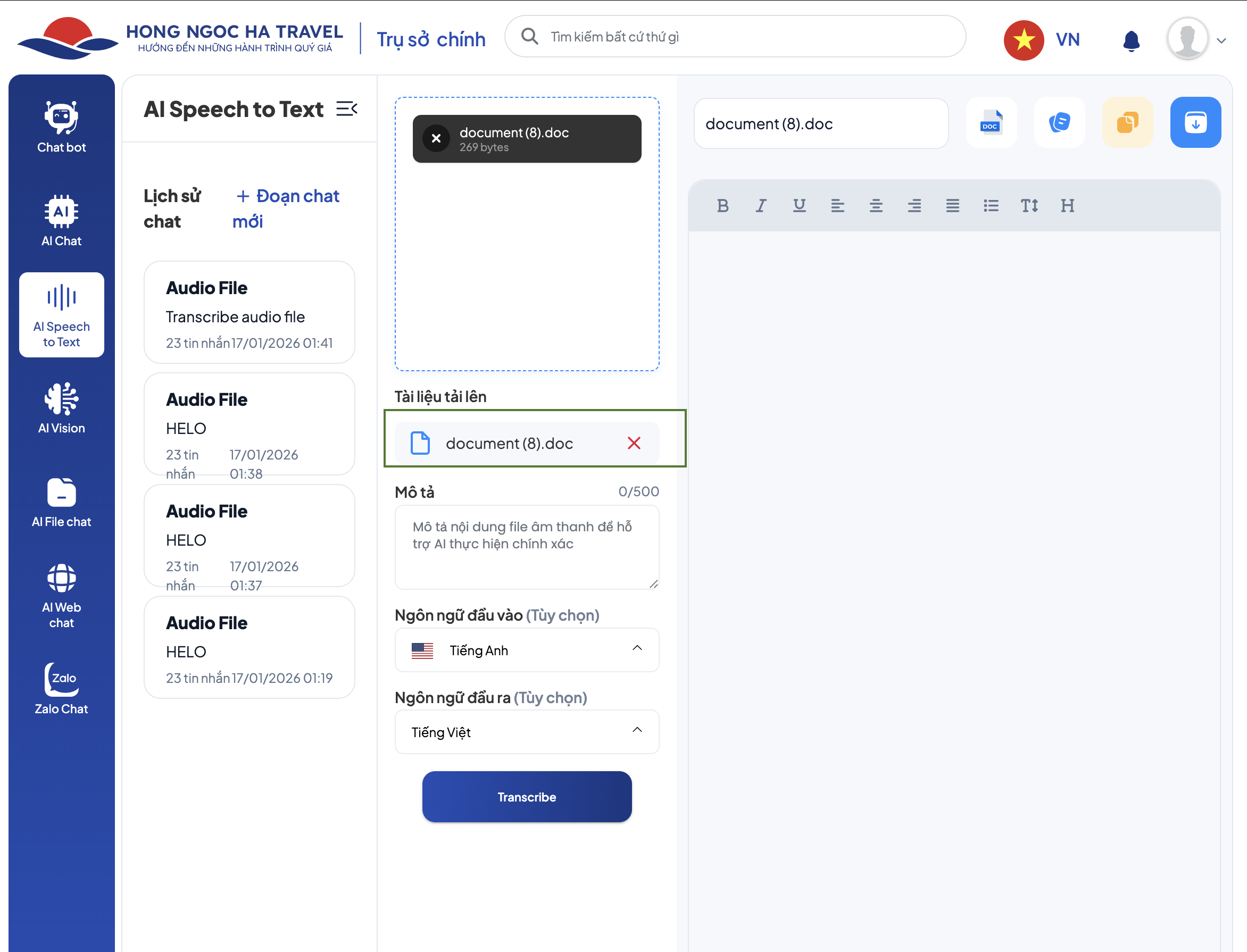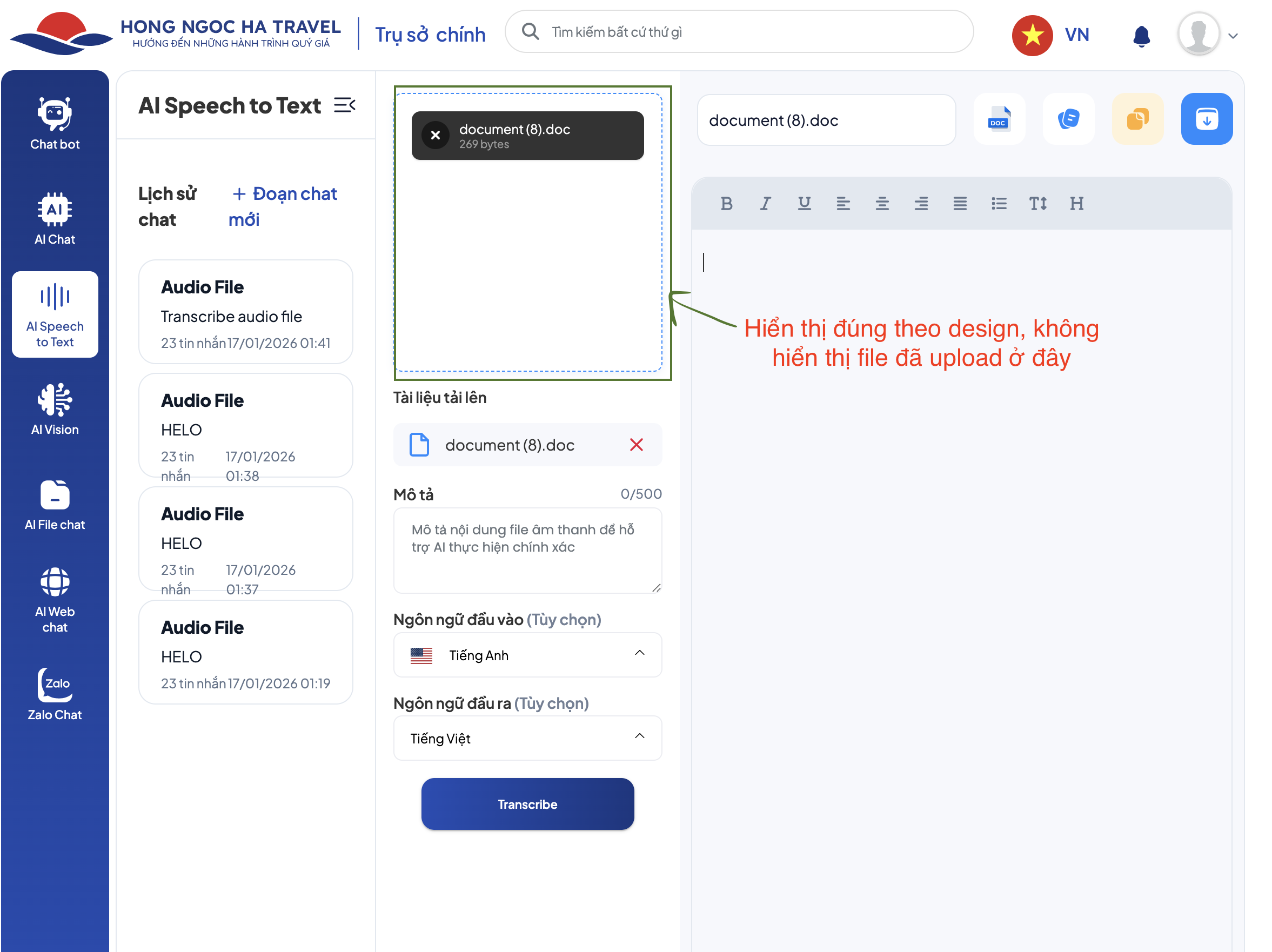 open[User][AI Speech to text]: Lỗi tải file không đúng định dạng