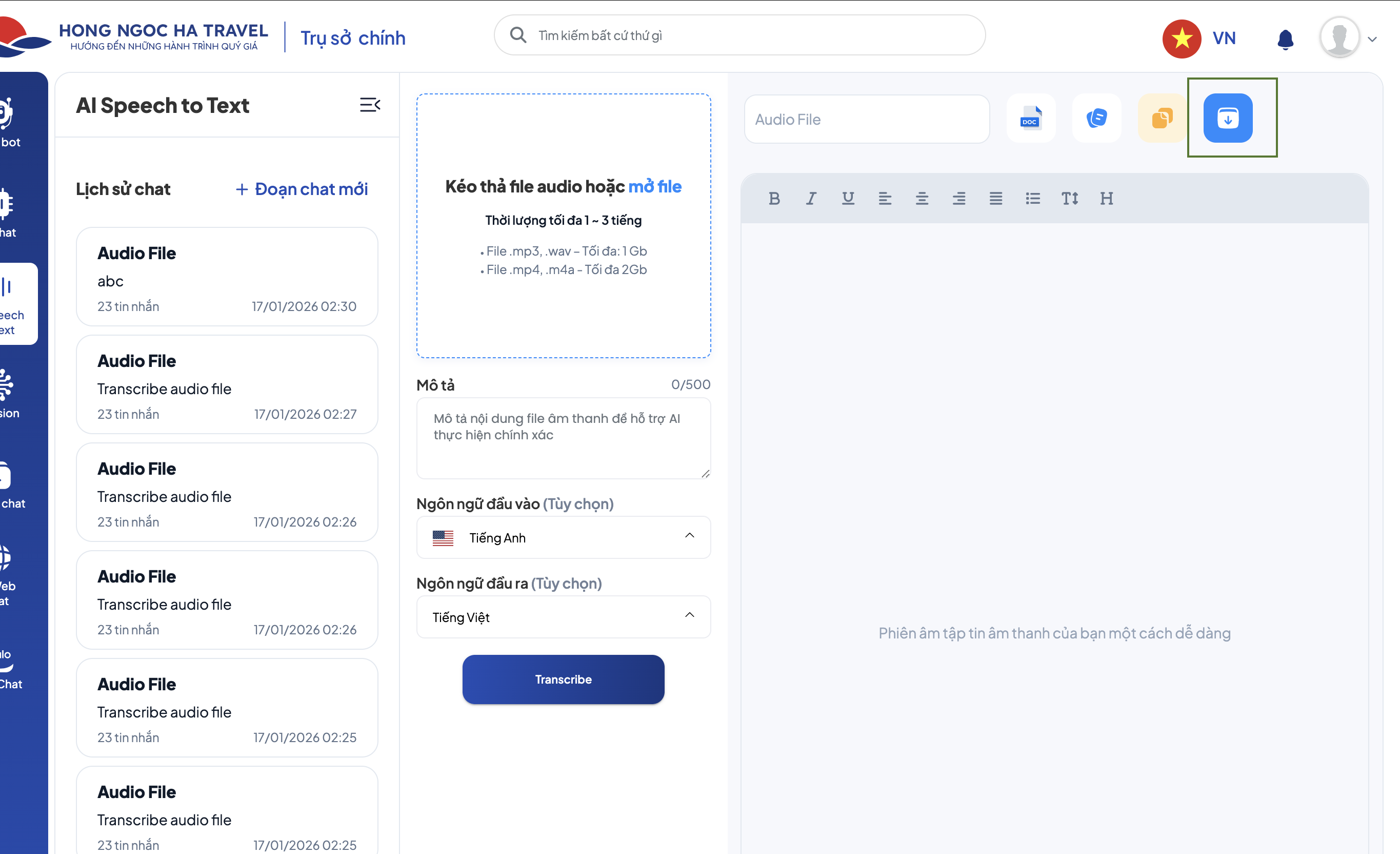 open[User][AI Speech to text]: Click Lưu đang mở tab mới