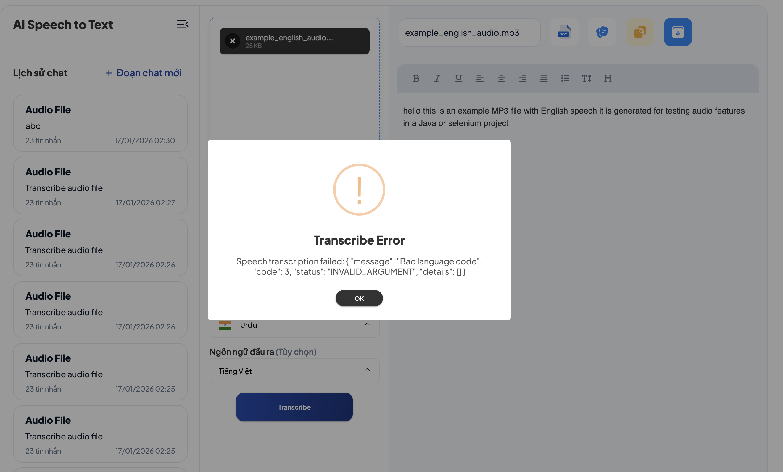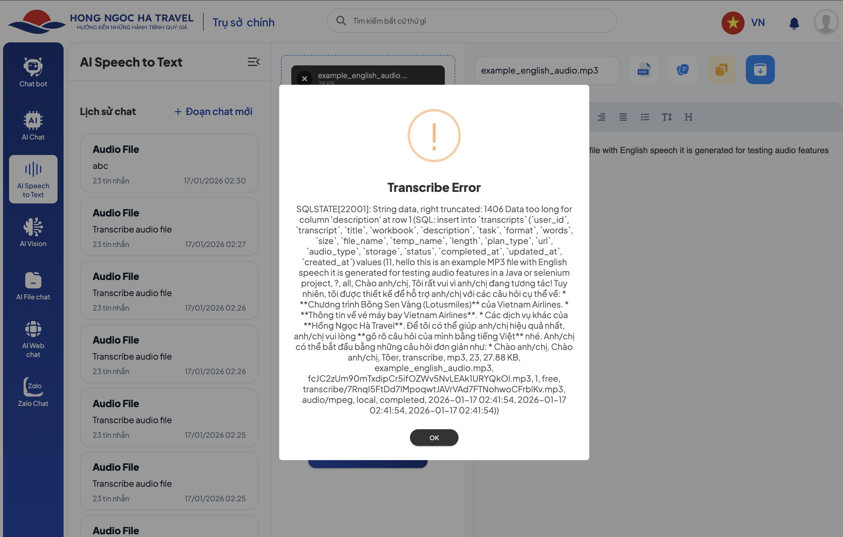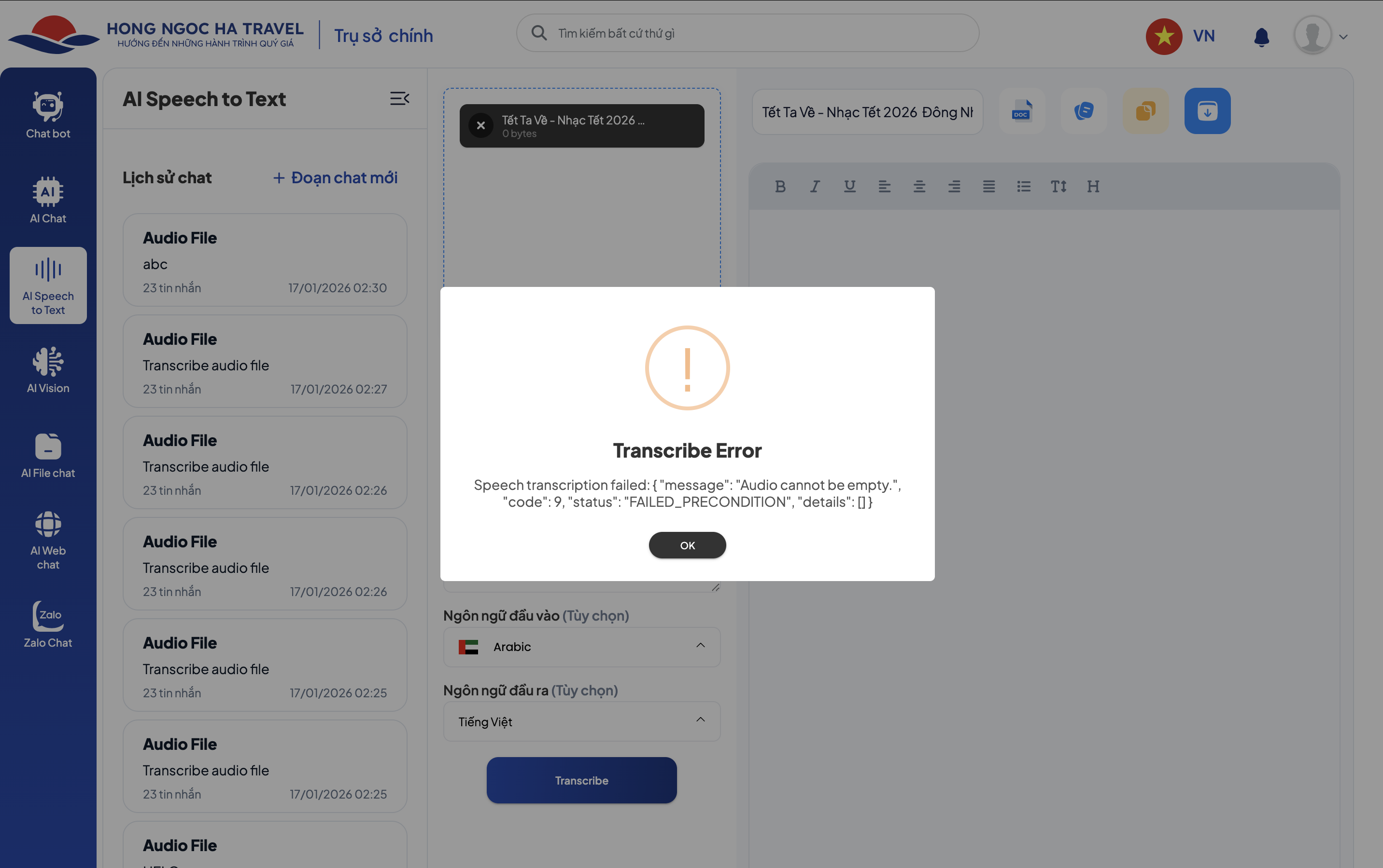 open[User][AI Speech to text]: Sửa lại hiển thị các message lỗi