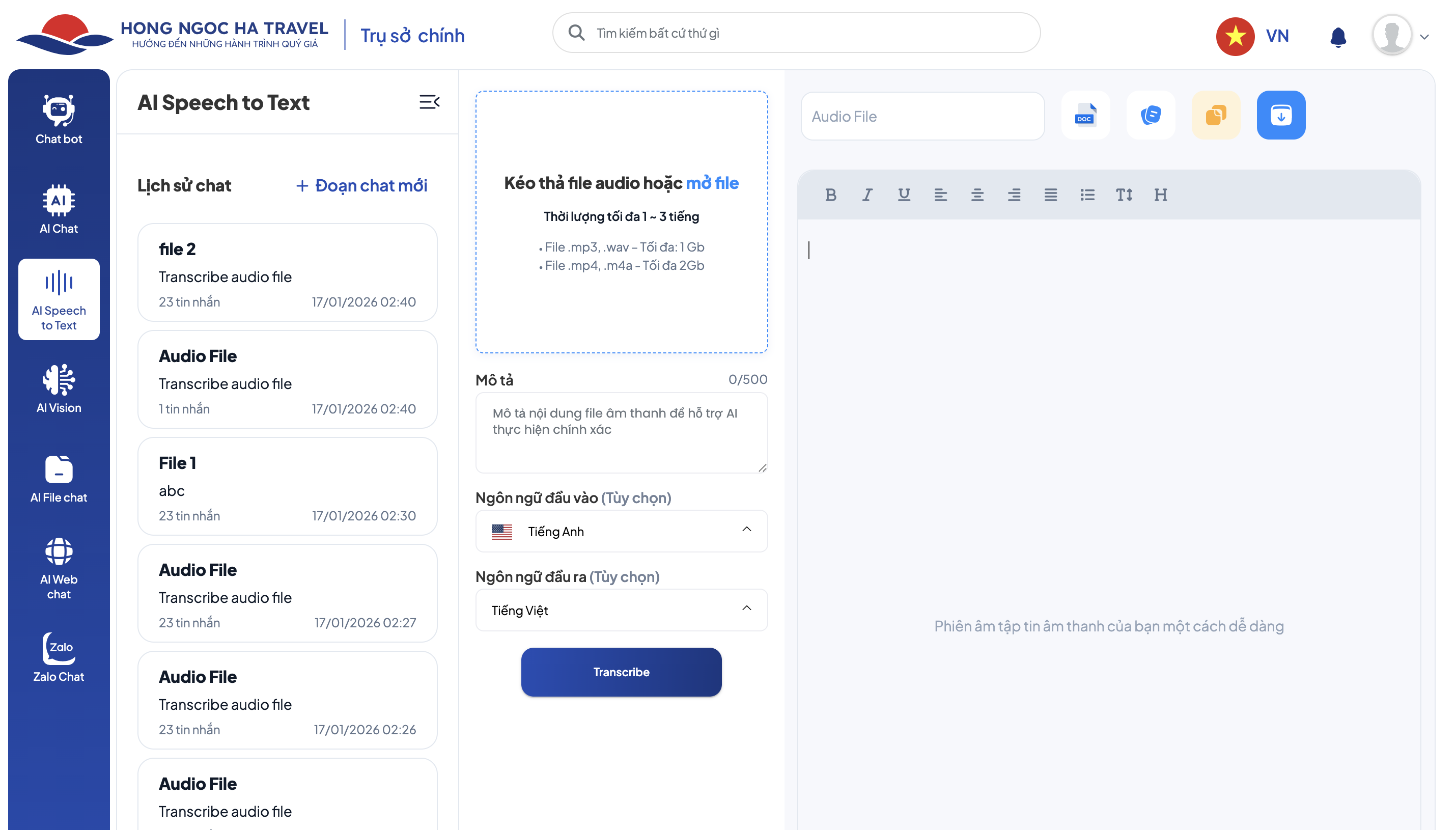 2.Mô tả không có đang hiển thị : Transcribe audio file