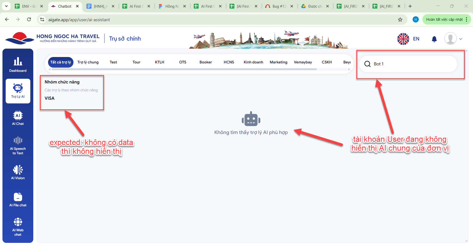 open[User][Trợ lý AI] Tài khoản User và admin phòng ban đang không hiển thị AI chung của đơn vị