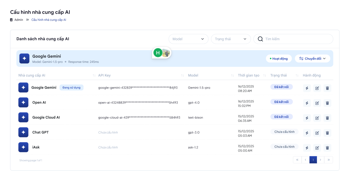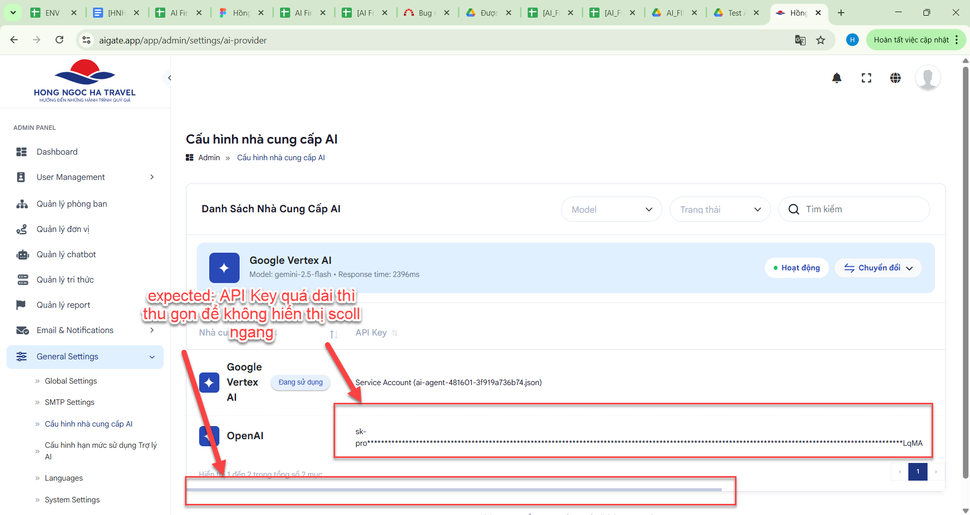 open[Admin][Cấu hình nhà cung cấp AI] API Key quá dài làm hiển thị scroll ngang trong danh sách