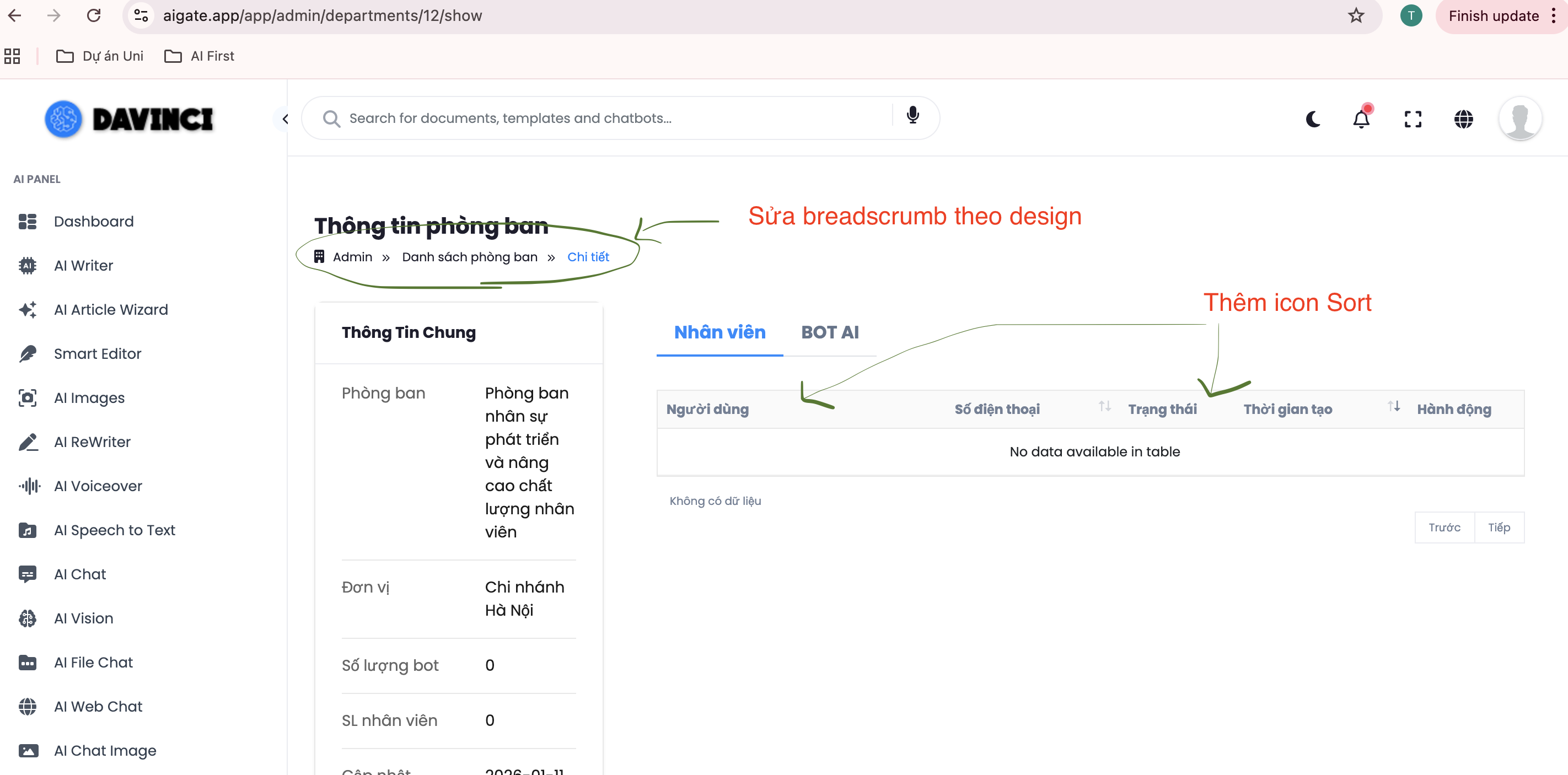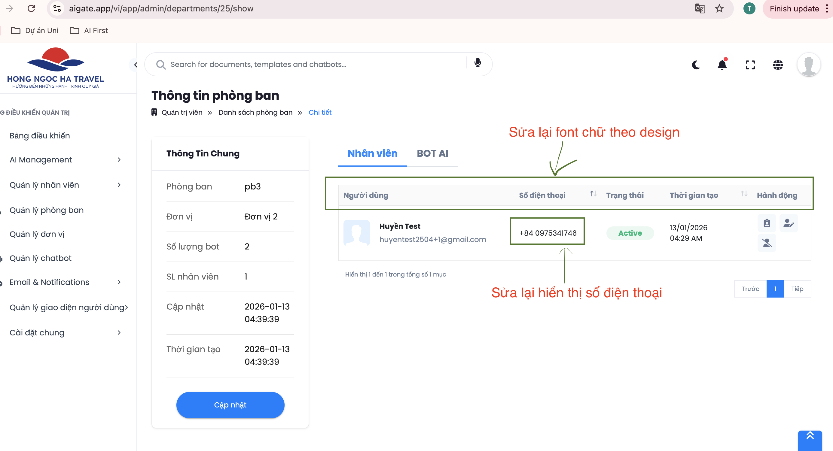 Sửa hiển thị màn chi tiết phòng ban