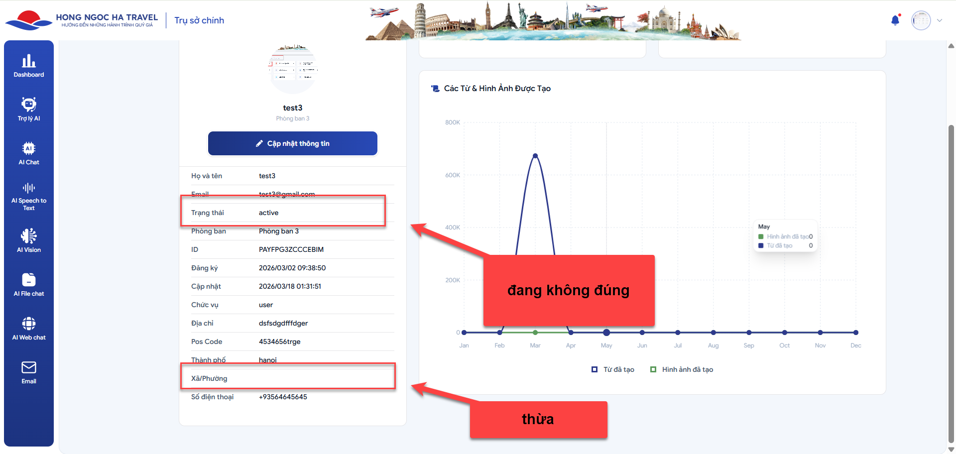 • Actual: Trường trạng thái đang không có hiển thị đúng