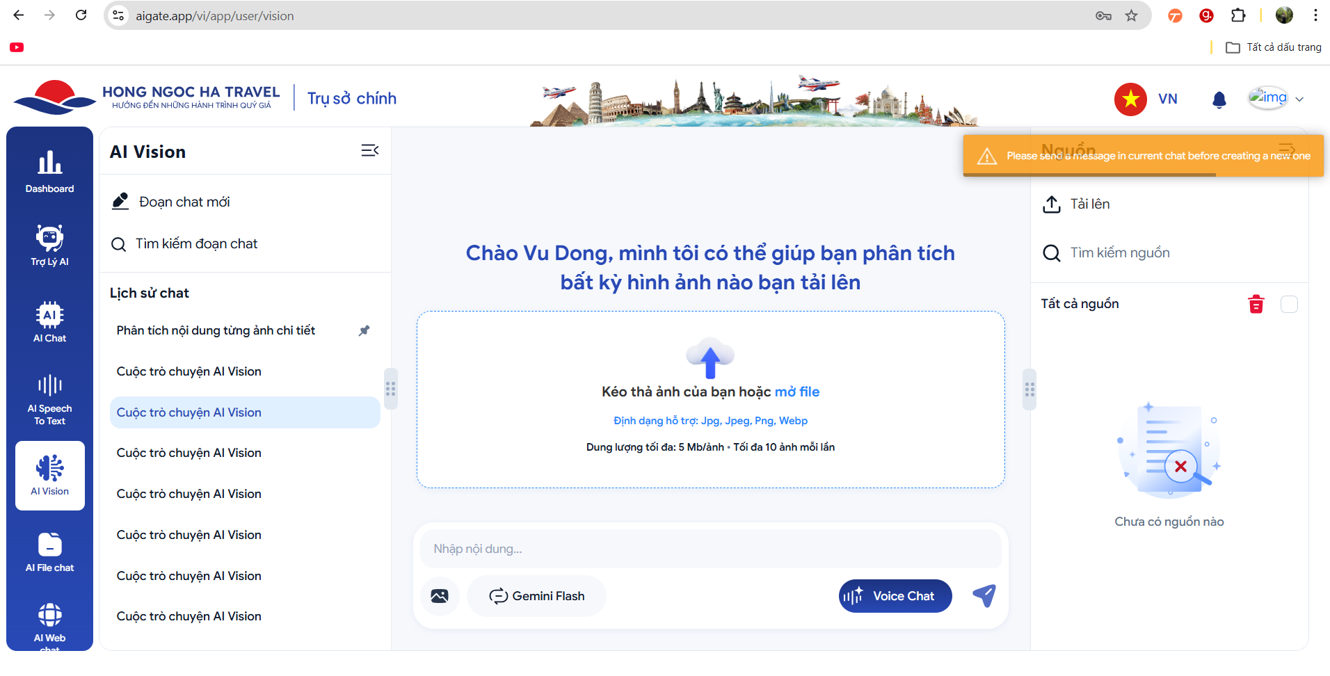 open[User][AI Vision] - Hệ thống đang cho phép tạo nhiều cuộc hội thoại trống