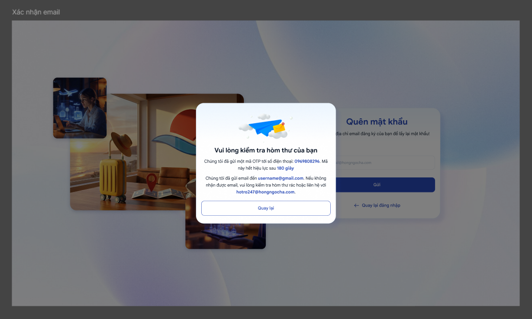 - Expected: Hiển thị thông báo đã gửi email và email đã nhập nhận được mail