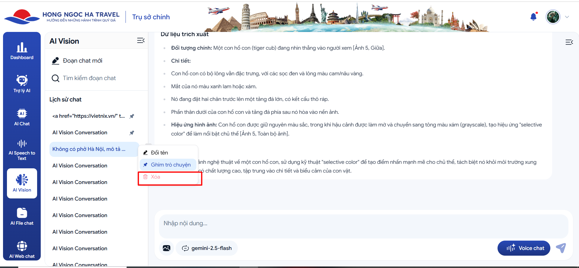 open[User][AI Vision][Nguồn]- Hệ thống disable chức năng xóa với đoạn chat đang chat