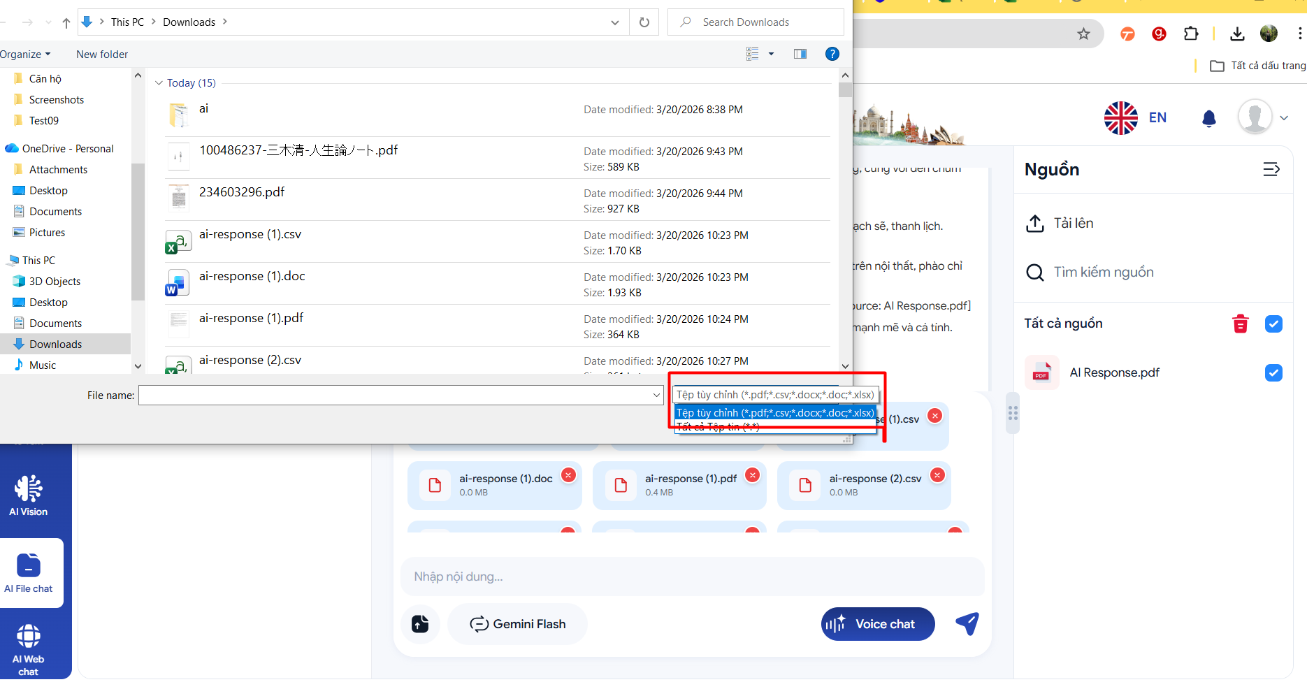 Upload file trong chat đang lấy all các file