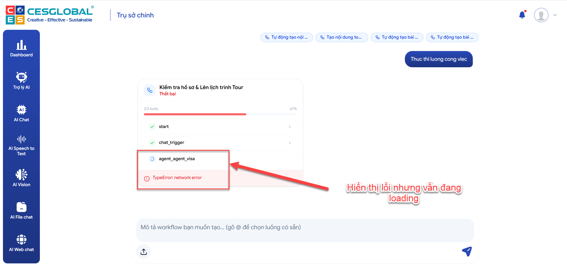 open[Luồng công việc] Luồng chạy lỗi nhưng vẫn hiển thị đang load