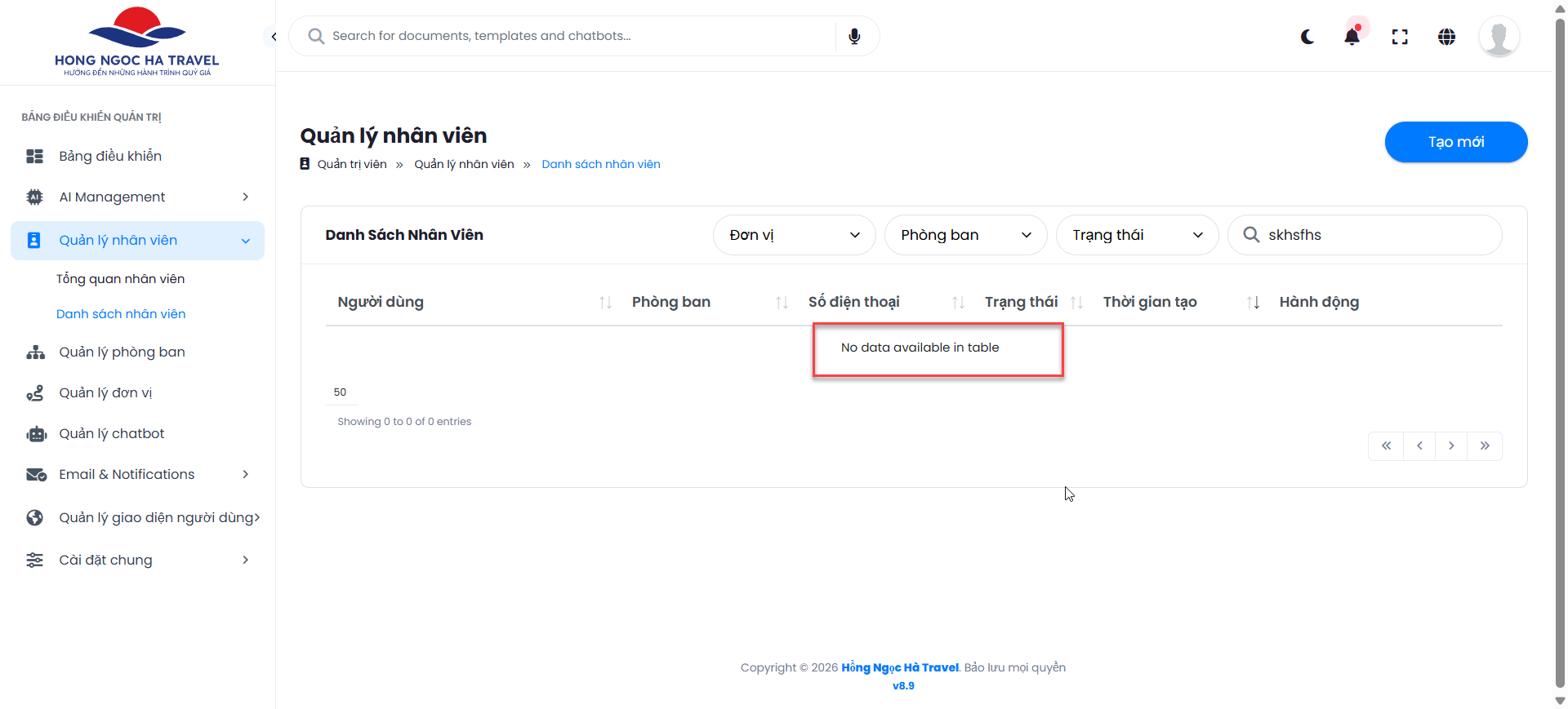 open[Admin - Quản lý nhân viên] Sửa thông báo không có dữ liệu thành tiếng việt