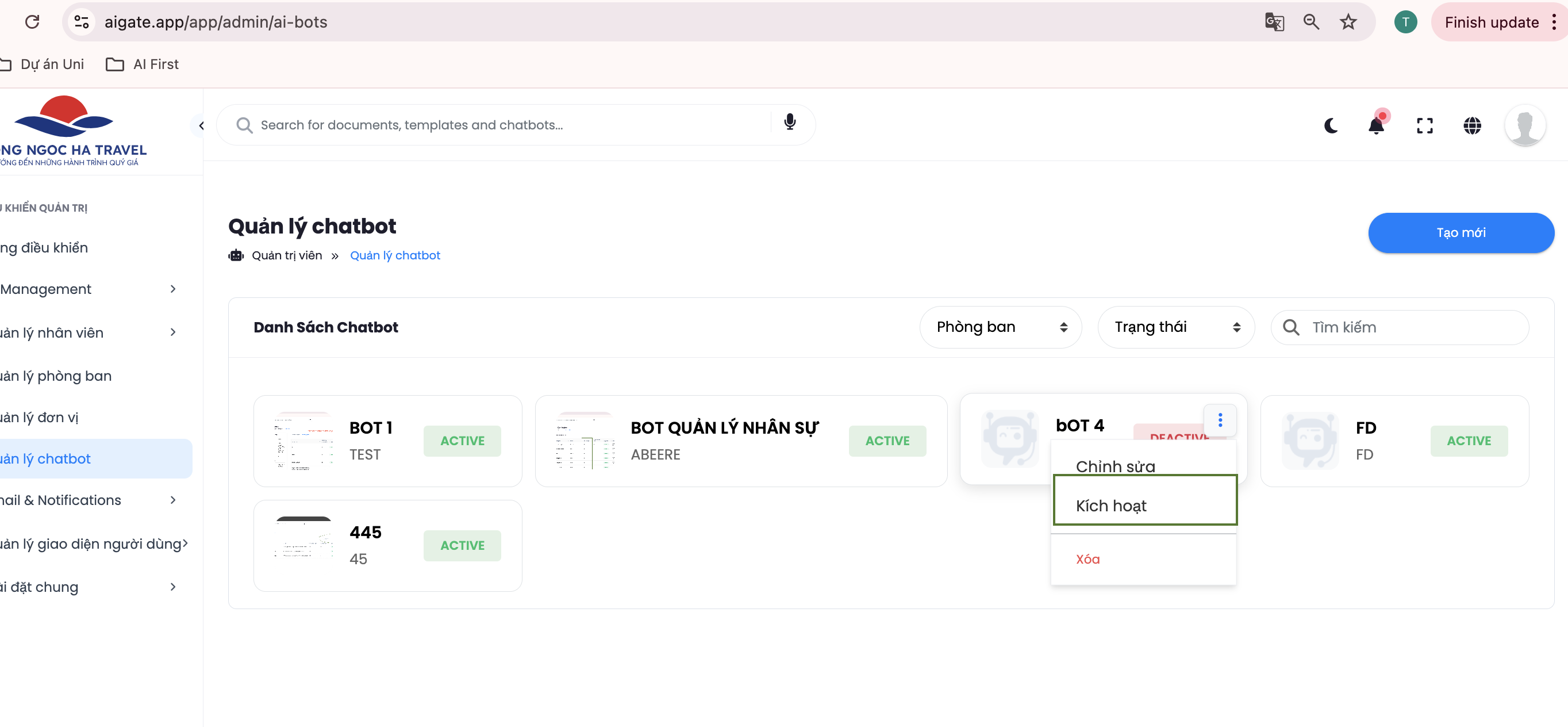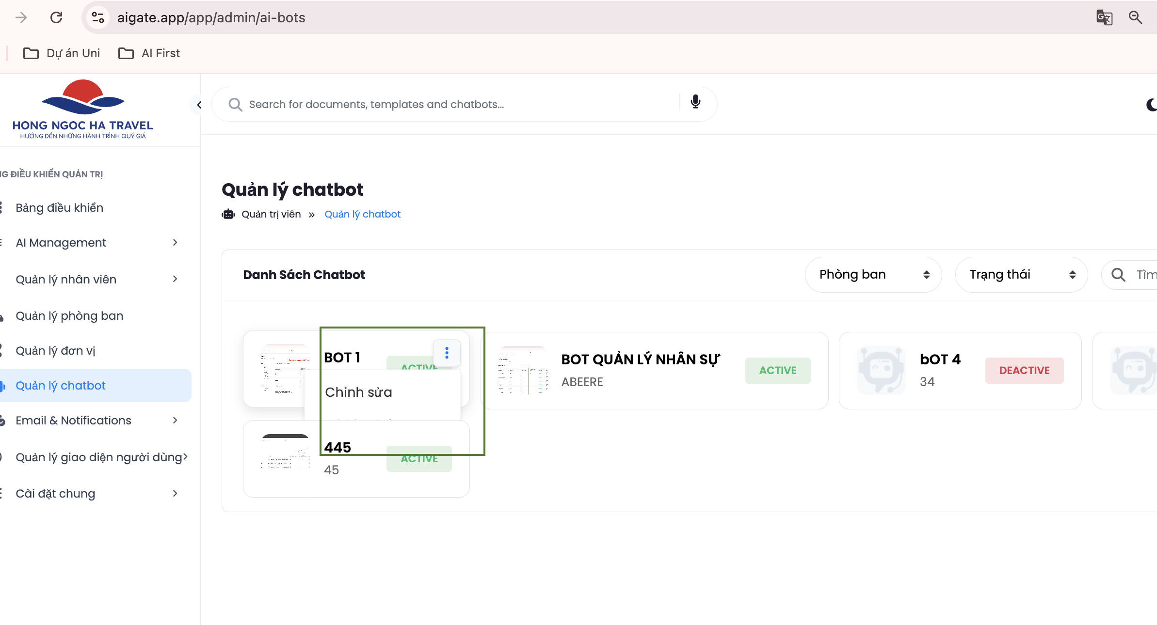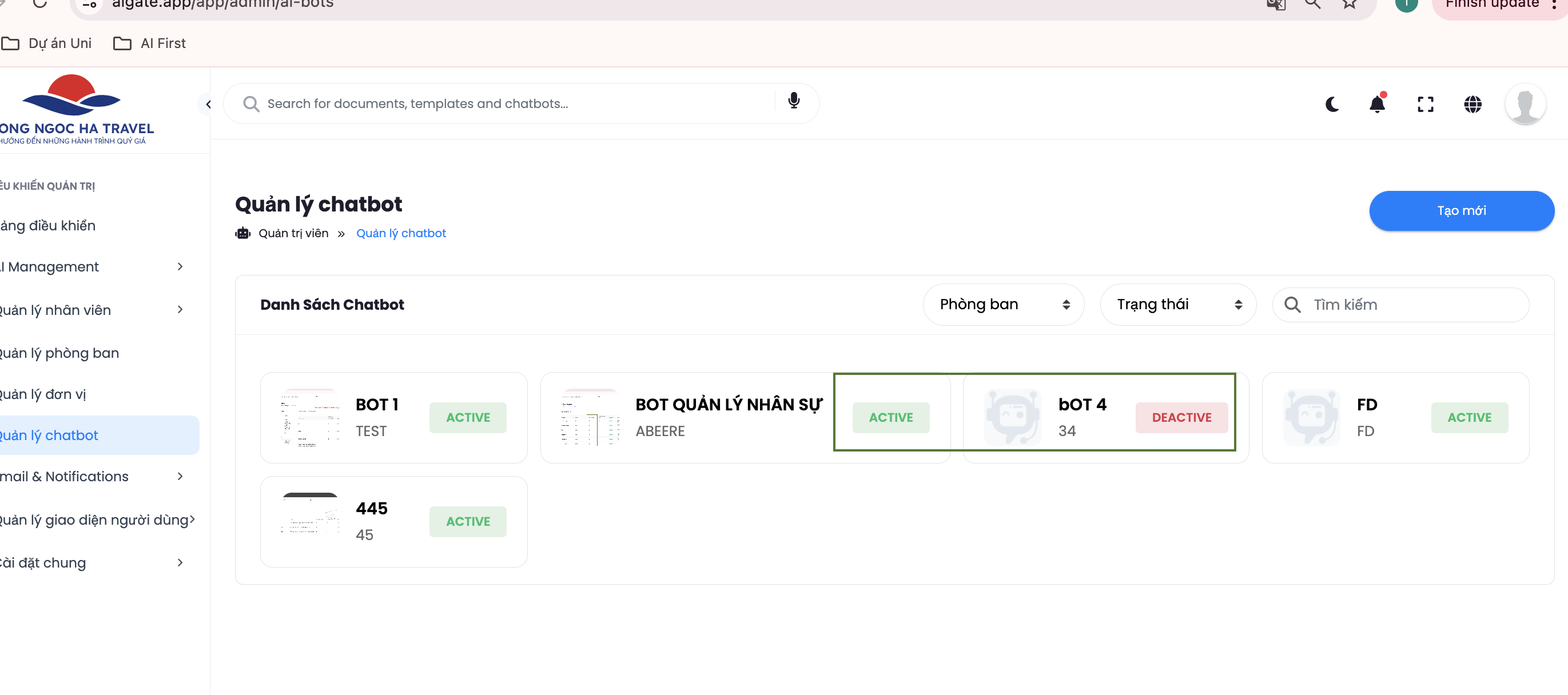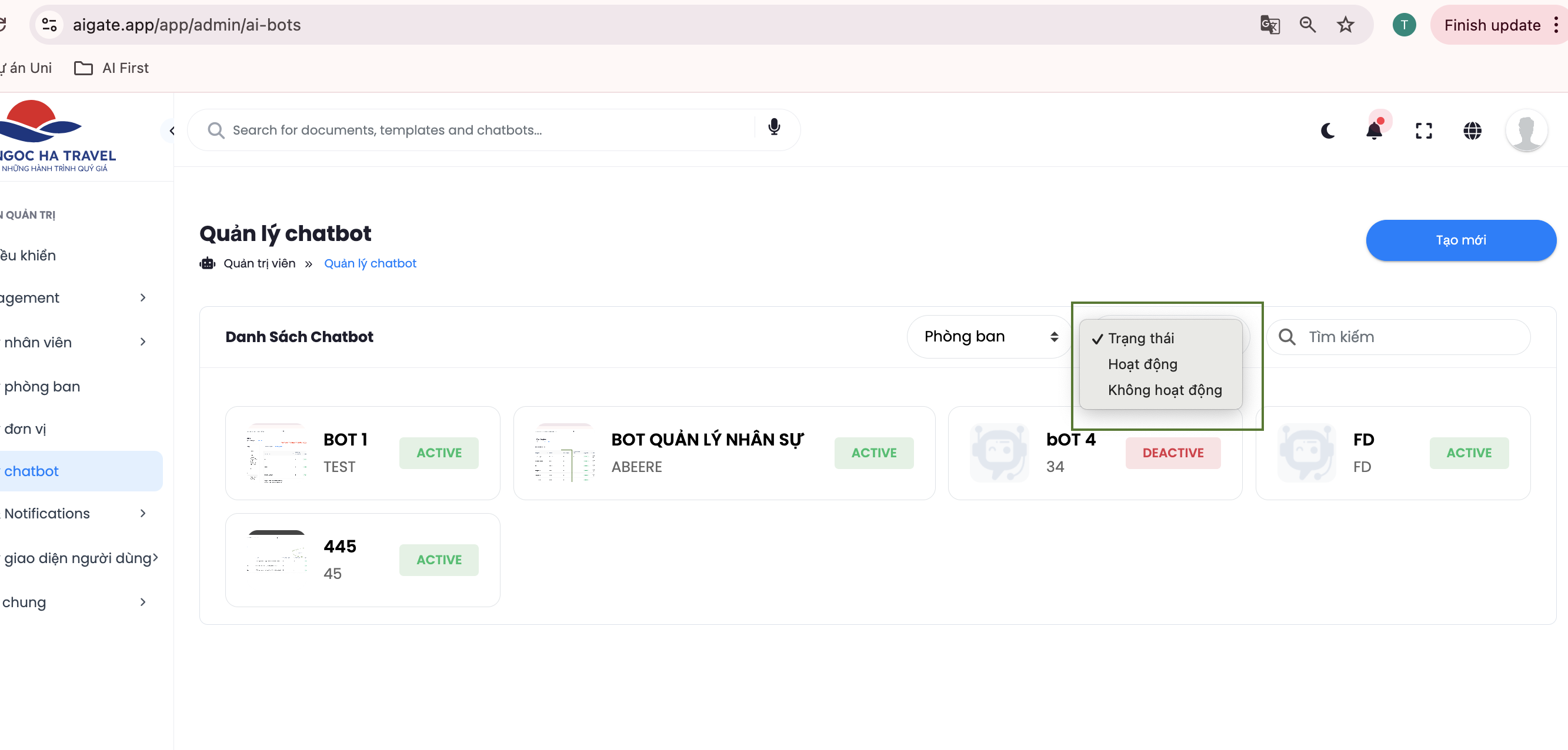 open[Admin- Quản lý chatbot] Sửa lại hiển thị màn quản lý Chatbot