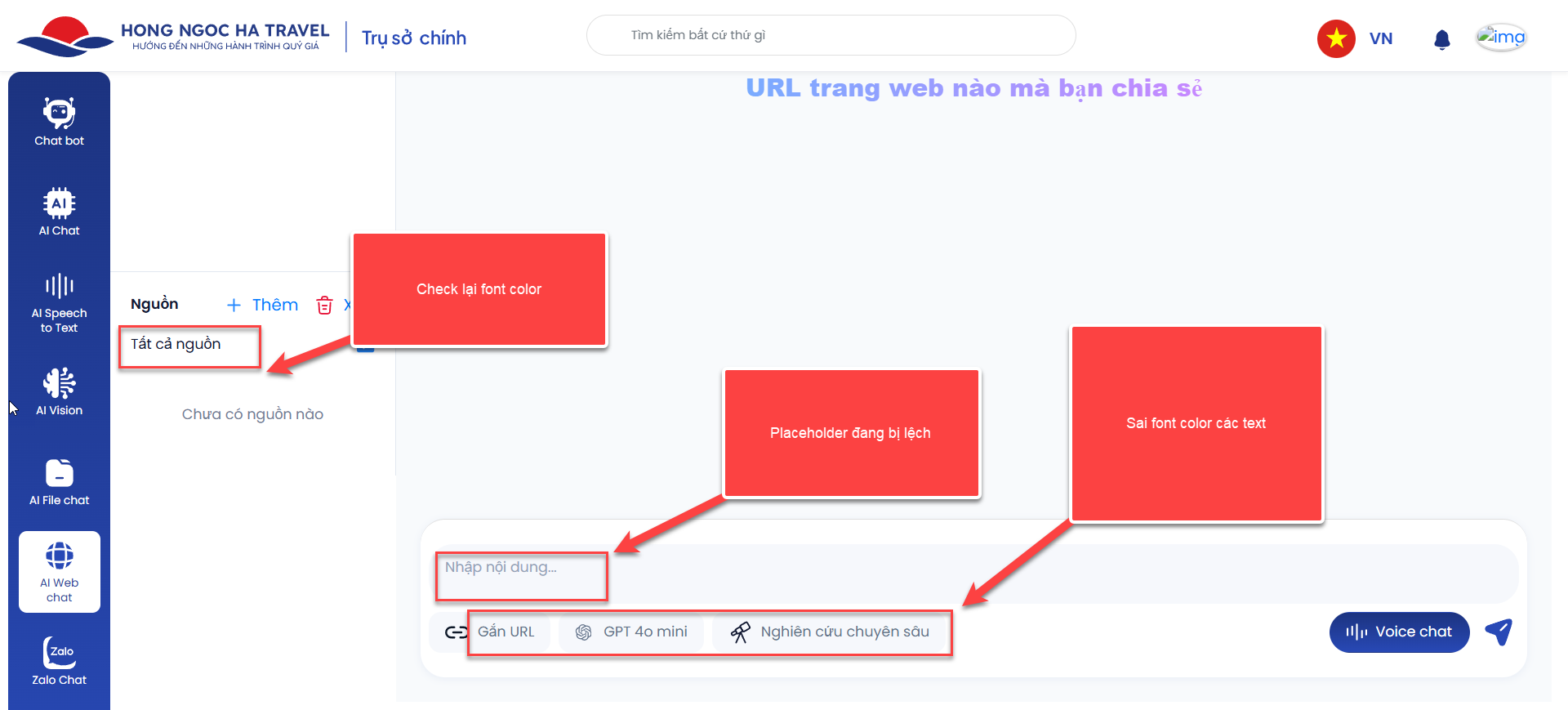 open[ User - AI Web chat ] Sửa giao diện màn hình